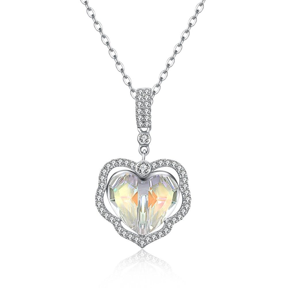 5.00 CT Aurora Borealis Stone Sterling Silver Swarovski Crystal Enchanting Heart Necklace
